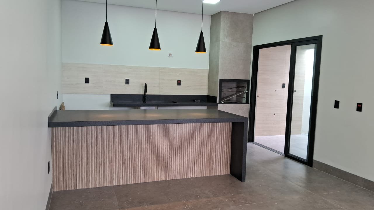sala e cozinha conjugadas com ilha e churrasqueira