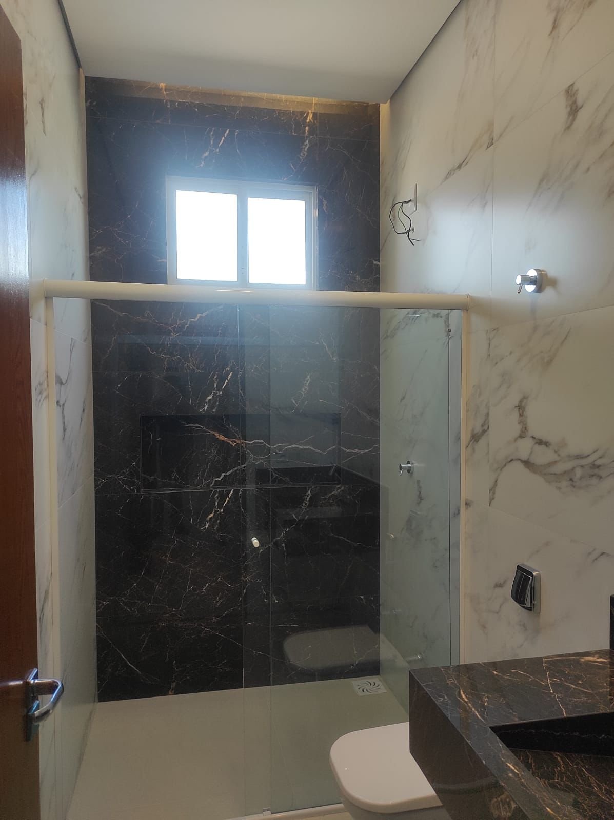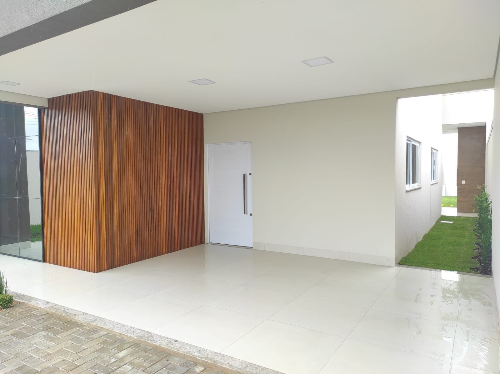 A casa possui acabamentos de alta qualidade, incluindo laje, porcelanato e luminárias em LED, garantindo durabilidade e sofisticação.