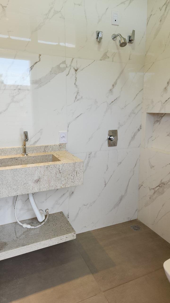 • banheiro inferior com pia em granito e metais docol