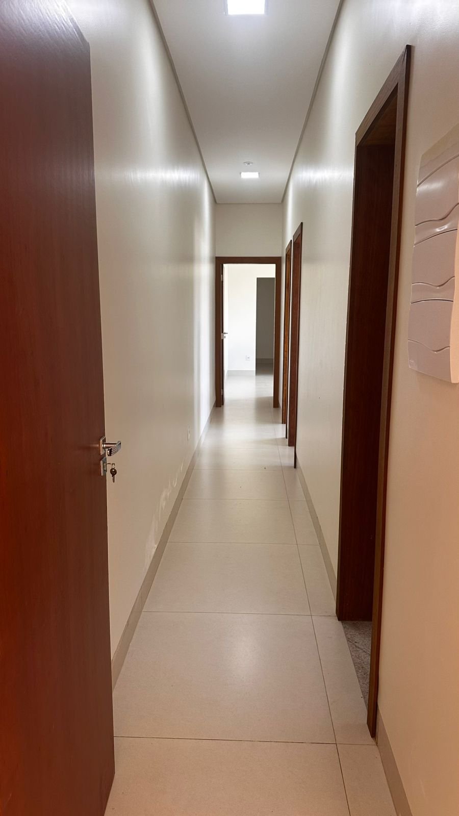 Portas internas em madeira. E porta de acesso ao gourmet em esquadria de alumínio;