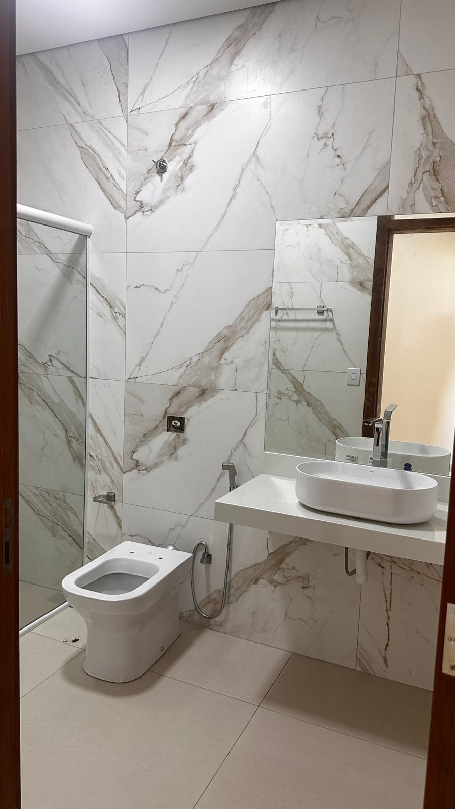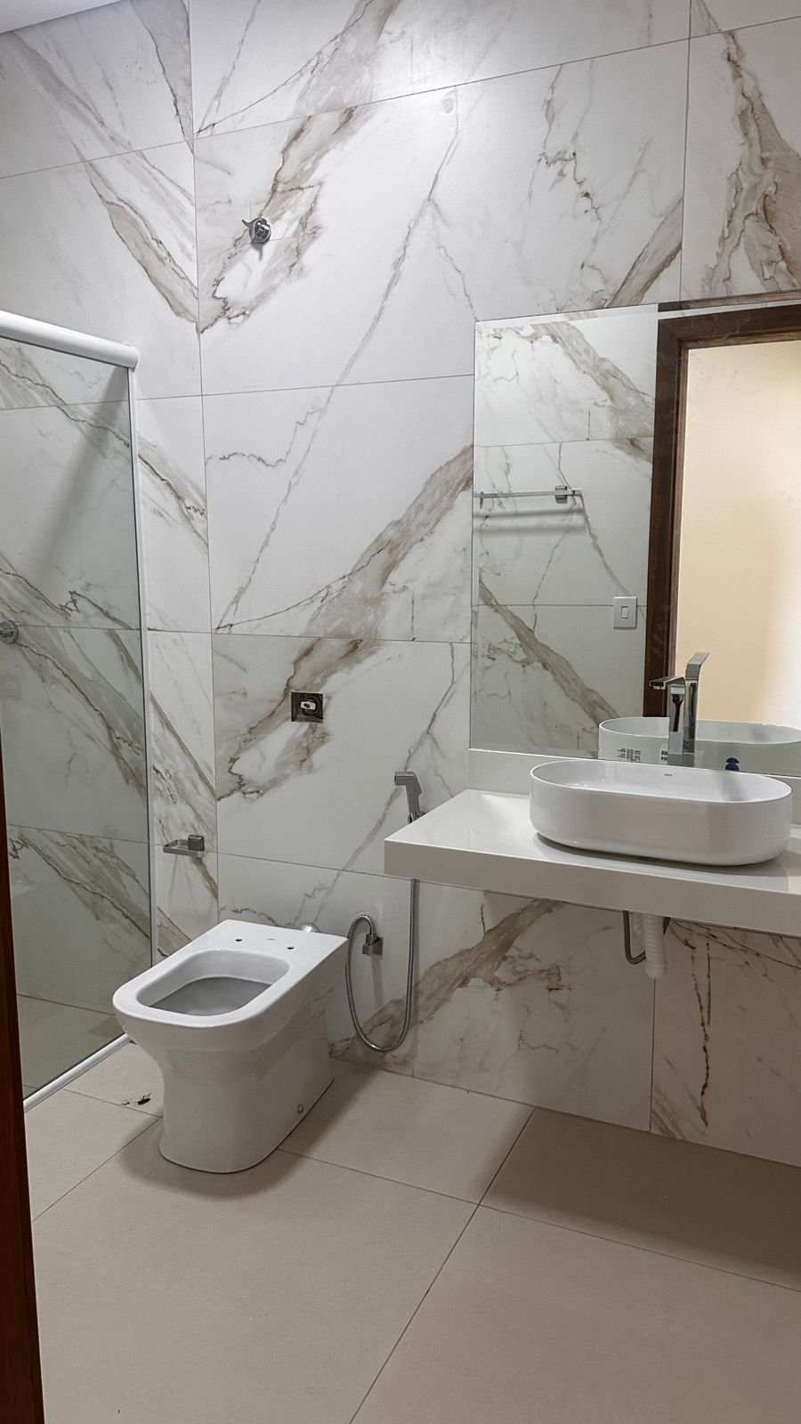 Os banheiros revestimentos em porcelanato;